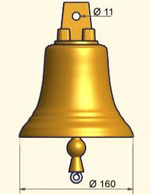 Le prix de la cloche  ø160mm comprend 1 battant bronze avec son boulon (bélière) en inox "marin".