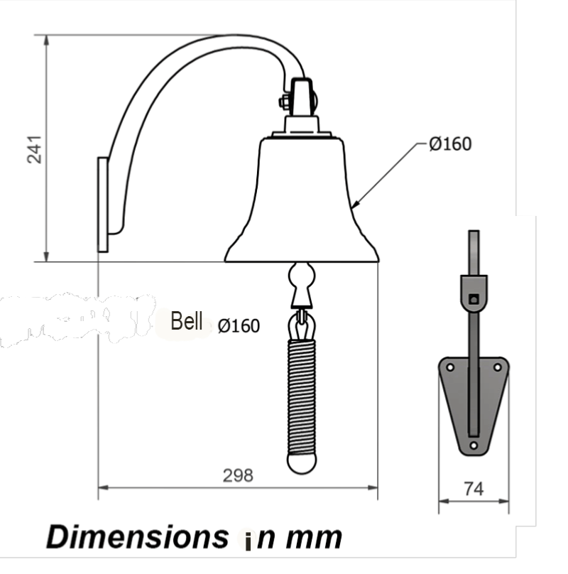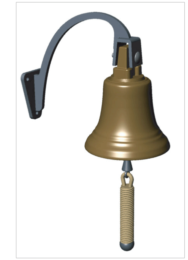 The ship's bell is equipped with a stainless steel mounting called " Swan Neck". Particulary appropiated to be used as a ship'sbell, it is also delightful for a home or other installation, particularly near the ocean.